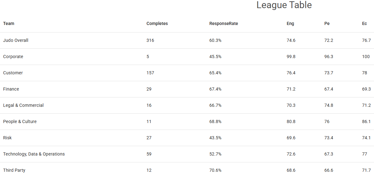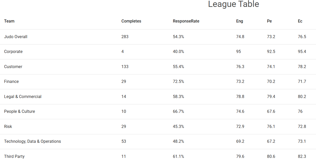 But your responses are critically important because they allow us to see what’s happening in Judo and try and change the things that aren’t working. JEDI comments and feedback has enabled us to review lots of the things we do including monthly EAJ calls, pay philosophy, Judo Tracks etc.